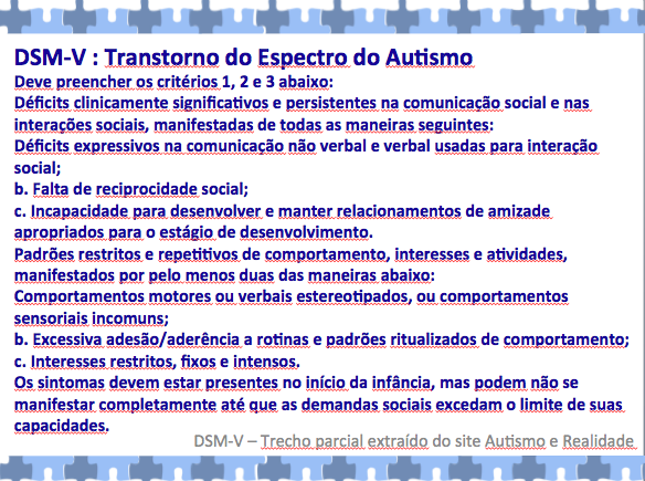 Tem hora que sinto necessidade de voltar a ler os critérios, lógico que não é para categorizar nem limitar minha filha eu sempre escrevo que rótulo é para nortear e não limitar, eu preciso lembrar quais as peças do desenvolvimento não se encaixam direito e trabalhar em cima disso.